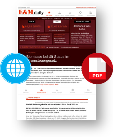 🚩 E&M daily: Strom aus Biomasse bleibt steuerrechtlich doch öko