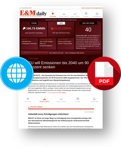 🚩 E&M daily: EU will Emissionen bis 2040 um 90 Prozent senken